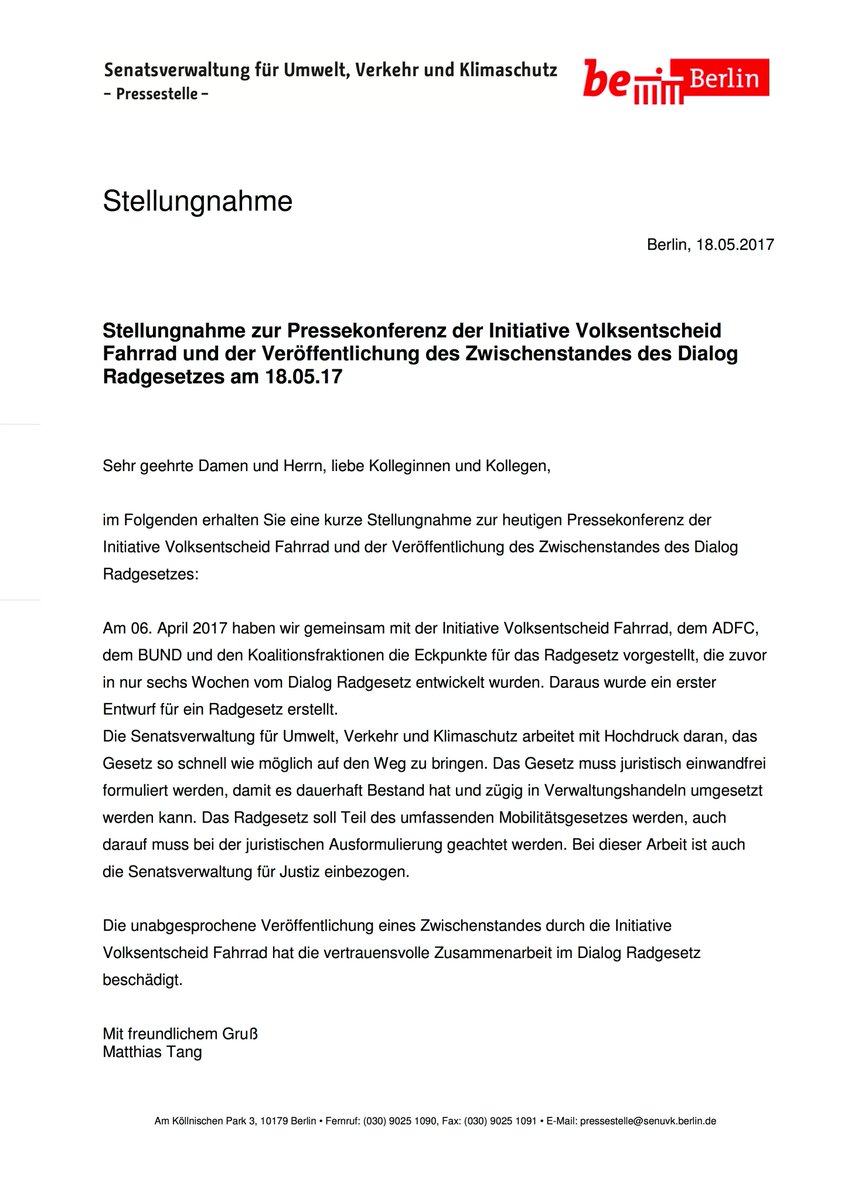 - RT @wegeheld: SenUVK nimmt Stellung zu Vorwürfen des @radentscheid. Link ->